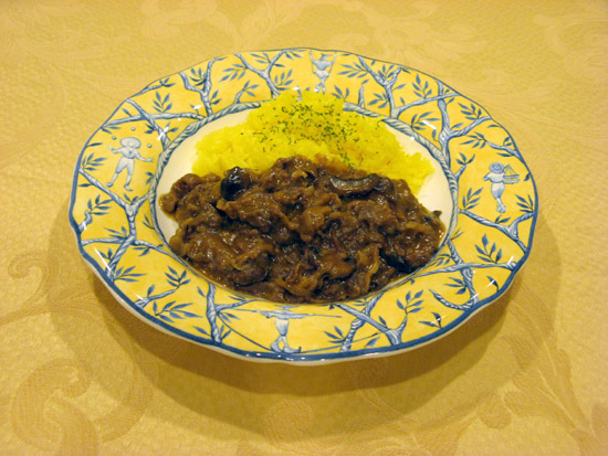 - ストロガノフは帝政ロシアの大富豪で、ロシアの牛肉が固いので、それをおいしく頂くために考案した料理で、短時間でできる煮込み料理です。